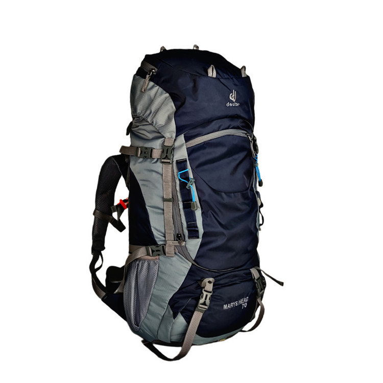 کوله پشتی کوهنوردی 70 لیتری پکینیو مدل D195 از سایز های بزرگ انواع کوله پشتی کوهنوردی تولید شده توسط برند Deuter بوده که جهت کوهنوردی های حرفه ای و سفر های چند روزه بک پکری عرضه شده است. ساختار بدنه ارگونومیک نیز در این کوله پشتی به دلیل یکی از پر فروش ترین ها برای کوهنوردی و ارتفاع پیاده سازی شده تا هنگام استفاده احساس راحت و بدون خستگی را در زمان صعود به ارتفاعات داشته باشید. دو قابلیت و ویژگی مهم در ساختار ارگونومیک این محصول مشاهده یکی از آنها قابلیت تنظیم بند ها و هارنس (کمربند) کوله پشتی Deuter می باشد. این قابلیت امکان تنظیم ارتفاع کوله را فراهم کرده و با توجه به آناتومی بدن افراد (چاق یا لاغر بودن) امکان تغییر سایز را فراهم خواهد کرد. این مورد از مهمترین خصوصیت های طراحی ارگونومیک بوده زیرا پس از تنظیم کوله پشتی کمترین فشار روی بدن وارد خواهد شد. کمربند بزرگ به لایه داخلی فوم دار نیز بخش بزرگ تر و سنگین تر کوله پشتی را در خود داشته که به قوی ترین استخوان های بدن یعنی لگن هدایت می کند تا هیچ فشاری روی کمر نباشد. در واقع نیمی از وزن کوله توسط پا حمل شده به گونه ای که از ایجاد خستگی های زودرس جلوگیری خواهد کرد. به کار بردن فریم بندی و یک پد توری در قسمت پشت بدنه کوله کوهنوردی نیز فاصله لازم را با کمر افراد ایجاد کرده است. این فاصله نیز در جلوگیری از فشار وارد شده به کمر بسیار موثر بوده و با جریان دادن هوا از خود از تعریق بالا جلوگیری می کند. از ویژگی های مهم دیگر در طراحی این کوله پشتی Deuter می توان به جیب های متععد تعبیه شده در آن اشاره کرد. دو جیب زیپ دار روی کمربند ، دو جیب بدون زیپ در کناره ها ، یک جیب زیپ دار در قسمت جلویی و دیگری در قسمت درب فوقانی تعبیه شده که باعث نظم دادن و سازماندهی لوازم مورد حمل خود در این کوله پشتی خواهد شد همچنین این کوله پشتی دارای سوت نجات بر روی سینه بند ، کاور باران و قلاب نگهدارنده و خروجی شلنگ کمل بک میباشد.