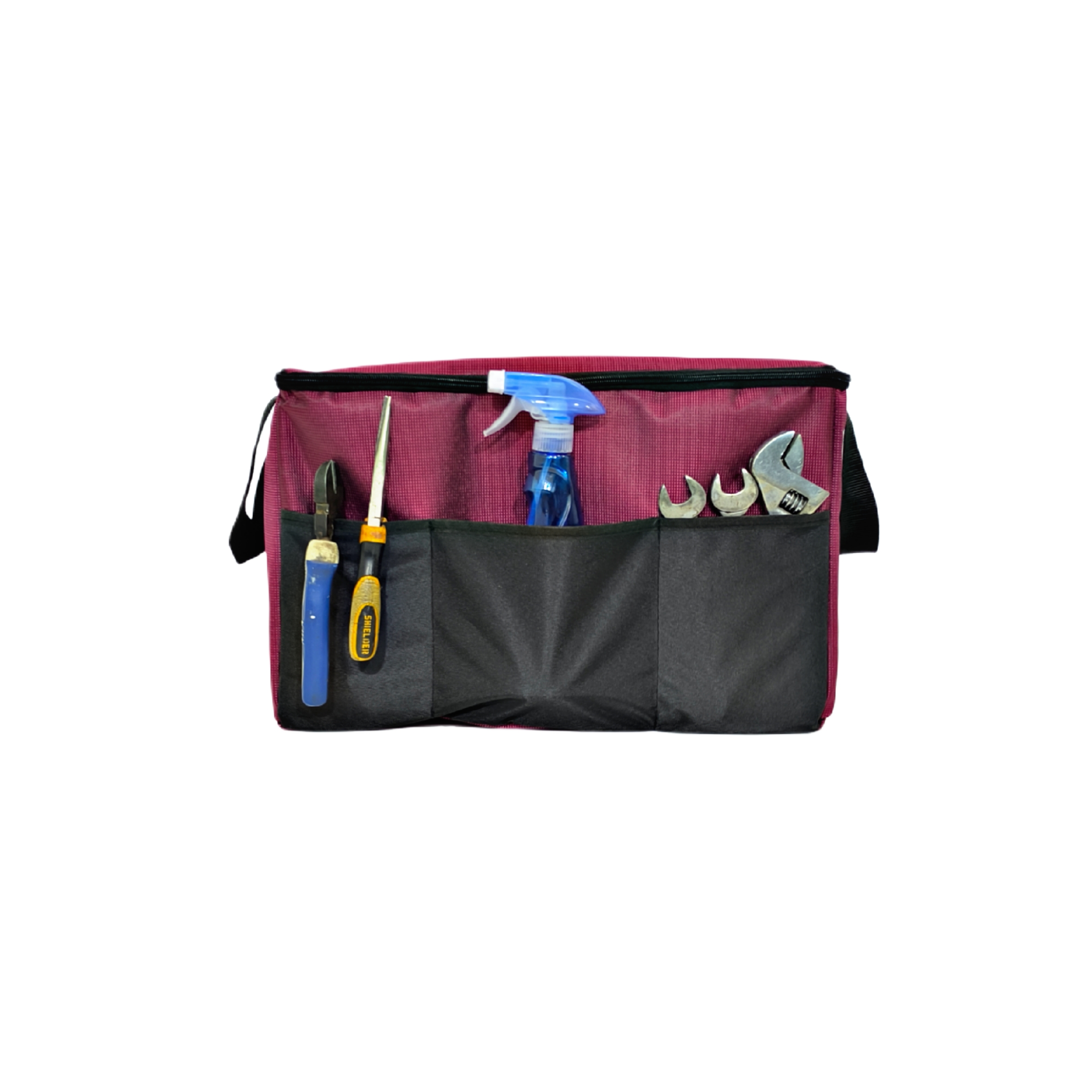 کیف فوق برای قرارگیری در صندوق عقب خودرو تعبیه شده است. این کیف ساختاری محکم از جنس برزنت دارد و با استفاده از ابر در دیواره این کیف موجب مستحکم ایستادن می شود. محصول فوق در قسمت جلو جای ابزار برای پیچ گوشتی و سایر ابزار خودرو دارد. این کیف با وجود چسب های که در قسمت کفی دارد مانع از حرکت کیف می شود.