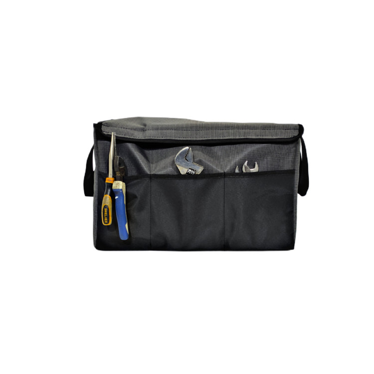 کیف فوق برای قرارگیری در صندوق عقب خودرو تعبیه شده است. این کیف ساختاری محکم از جنس سومیت دارد و با استفاده از ابر در دیواره این کیف موجب مستحکم ایستادن می شود. محصول فوق در قسمت جلو جای ابزار برای پیچ گوشتی و سایر ابزار خودرو دارد. برای راحتی شما این کیف با وجود چسب های که در قسمت کفی دارد مانع از حرکت کیف می شود.